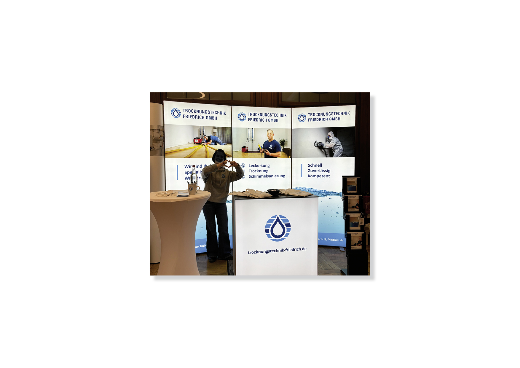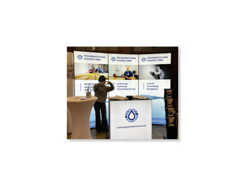 Der Knackpunkt liegt hier in der Umsetzung. Wir klären zunächst, wo das Produkt platziert werden und welchen Zweck es erfüllen soll. Ist es für den Innen- oder Außenbereich gedacht, wird es oft wiederverwendet, transportiert, immer wieder neu montiert? Wie langlebig soll es sein? Bei Beschilderungen sind zum Beispiel Fragen nach Lichtechtheit und Haltbarkeit des Materials sehr wichtig. Für die verschiedenen Bereiche gibt es unterschiedliche Spezialisten, die für eine fachgerechte Produktion sorgen.